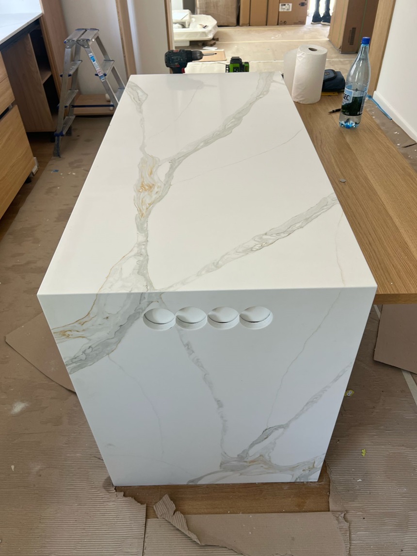 Piese Personalizate din Cuart Calacatta Pentru Blaturi De Bucatarie