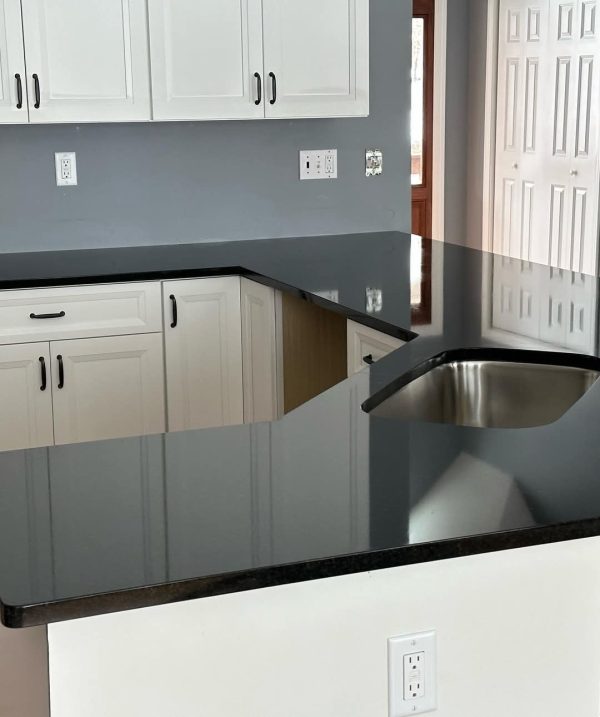 Blat Quartz Nero Absoluto din Lastra de 2 cm. Ideal pentru bucătărie și baie, panou de spate pentru protectie anti stropire și protecție plită. La depozite noastre găsiți în stoc o gamă foarte bogată de cuarț compozit pentru blaturi de bucătărie și baie.